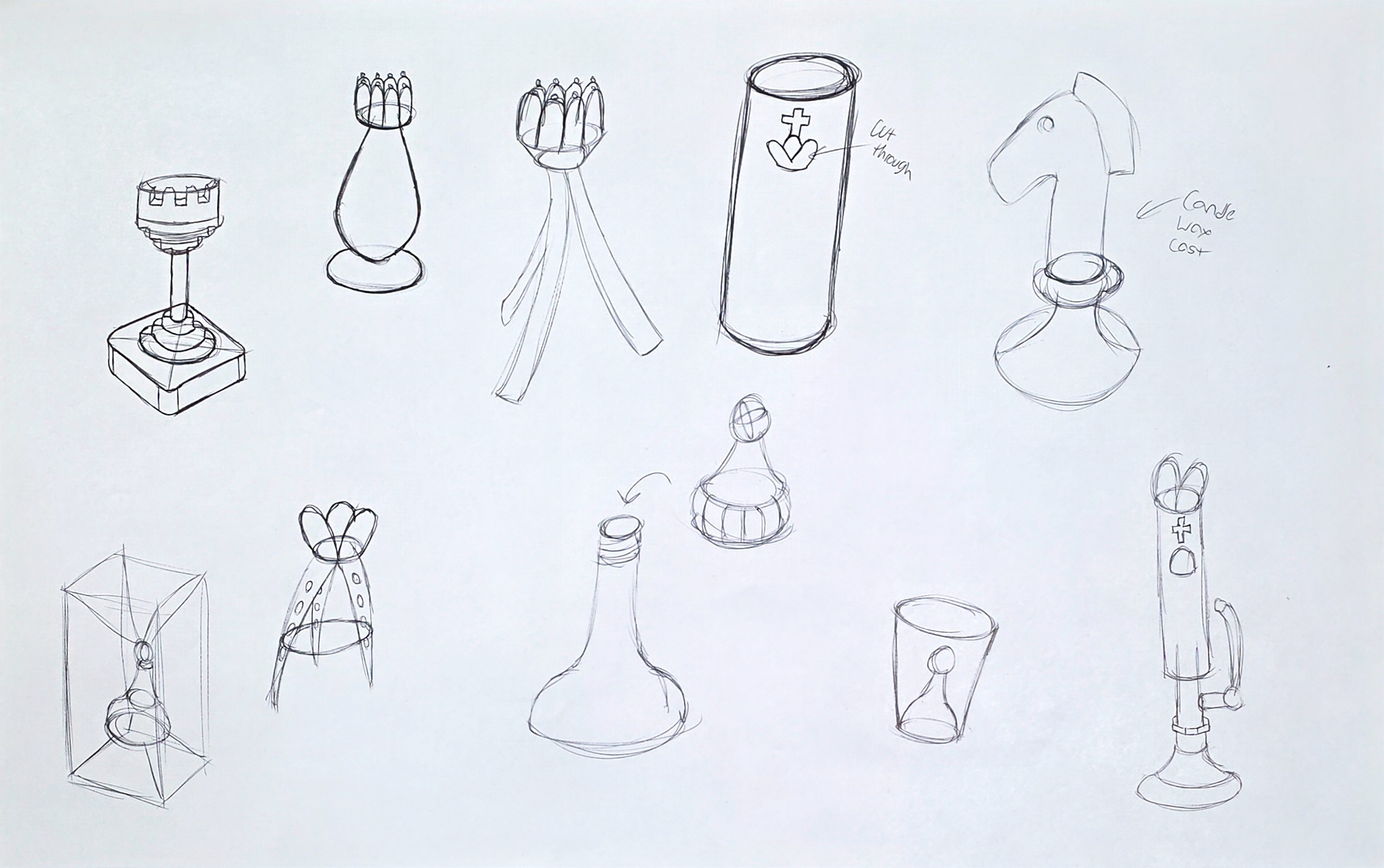 After settling on a single form family to pursue, I assessed human factors related to the use of the pieces. This allowed me to ensure that they would be natural and comfortable to grab, hold, and move on the board. The pieces were recieved well in this area.